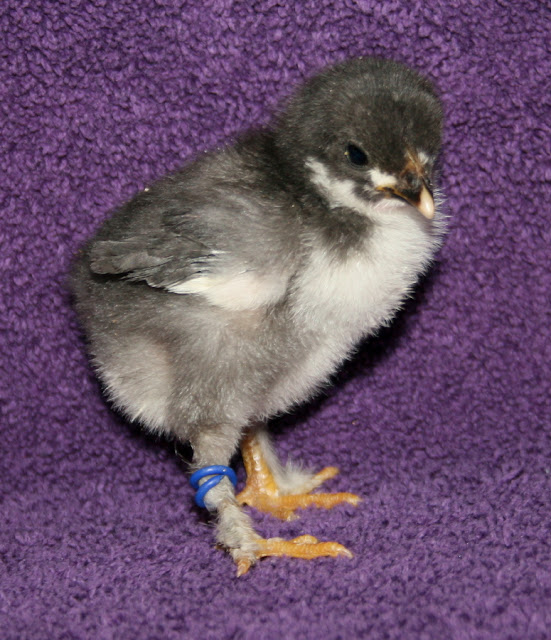 Once we caught on, we ditched the brooder box and the stuffed toy. As of today, the chick deaths seem to have ceased. Out of 16 chicks that hatched, 10 made it (one pipped but then died before hatching, it's abdomen hadn't fully closed). And because we are suckers who cannot resist, a trip to the feed store after the hatch got us an additional 4 chicks! Some of the chicks are marked with either a colored leg band or a food color spot to make IDing who's who easier. There are two siblings in this hatch, Ouzo and Harvey.